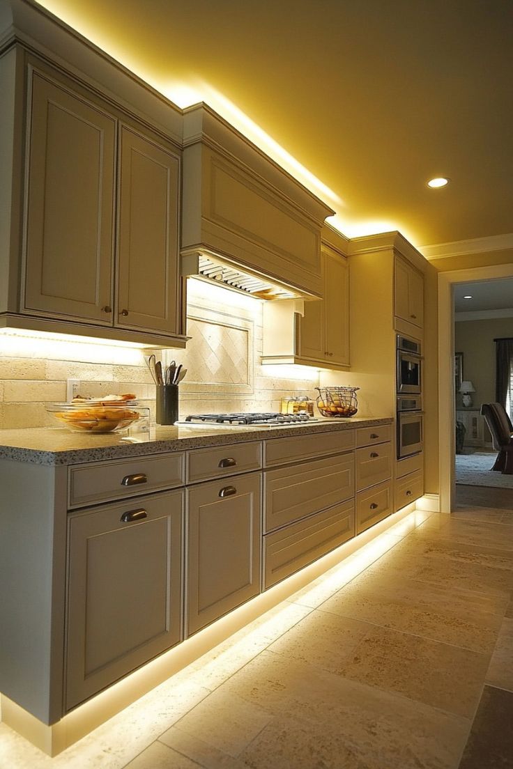 Kitchen lighting often includes recessed ceiling lights, pendant lighting above the island, and under cabinet lighting to brighten countertops. This combination helps homeowners cook, prepare food, and move safely around the kitchen.