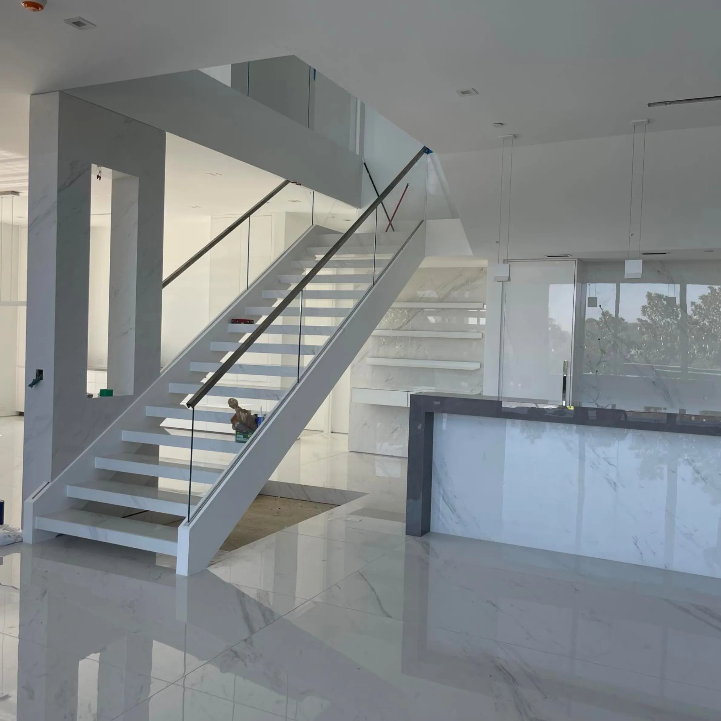 Explore our Interior Projects featuring custom Staircases & Railings, unique Accent Walls (tile, wood, concrete), precise Framing & Layout Changes, and complete Drywall, Texture & Paint solutions for a refined interior finish.